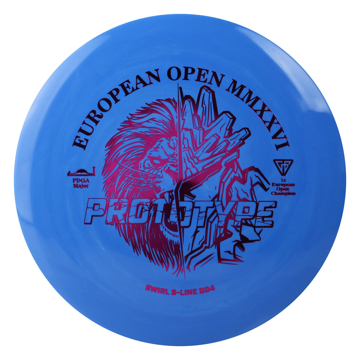 The sales of this product directly benefit the 2026 European Open held in Tallinn, Estonia in late June. The artwork pays homage to European Open's long-running emblematic animal, the Lion, paired with design picked by the defending European Open champion, Team Discmania's Gannon Buhr. The disc is molded in our durable and grippy Swirl S-line material. As far as the swirls go, the color transitions on most of the discs tend to be fairly subtle.